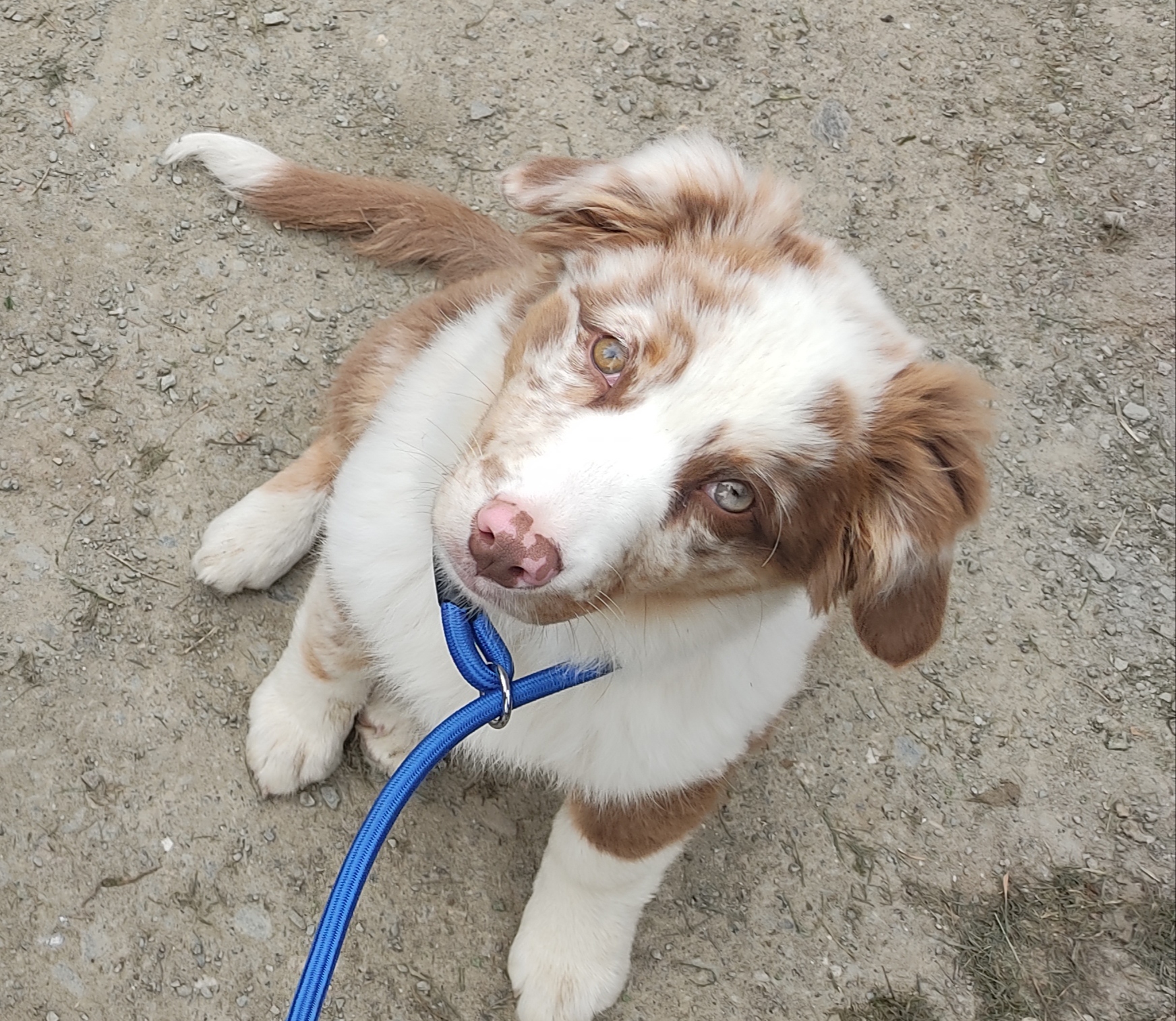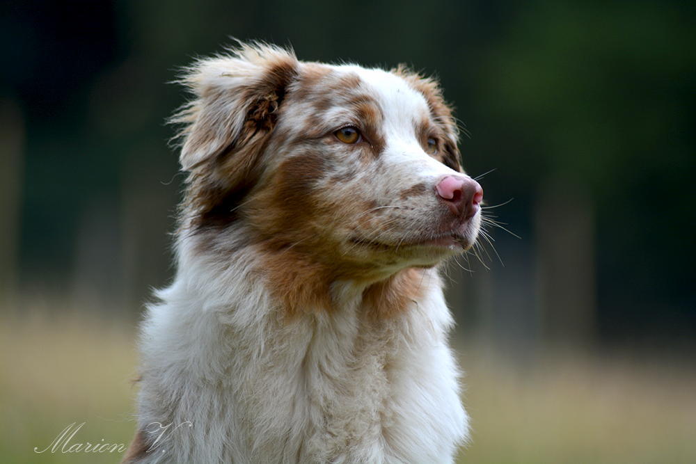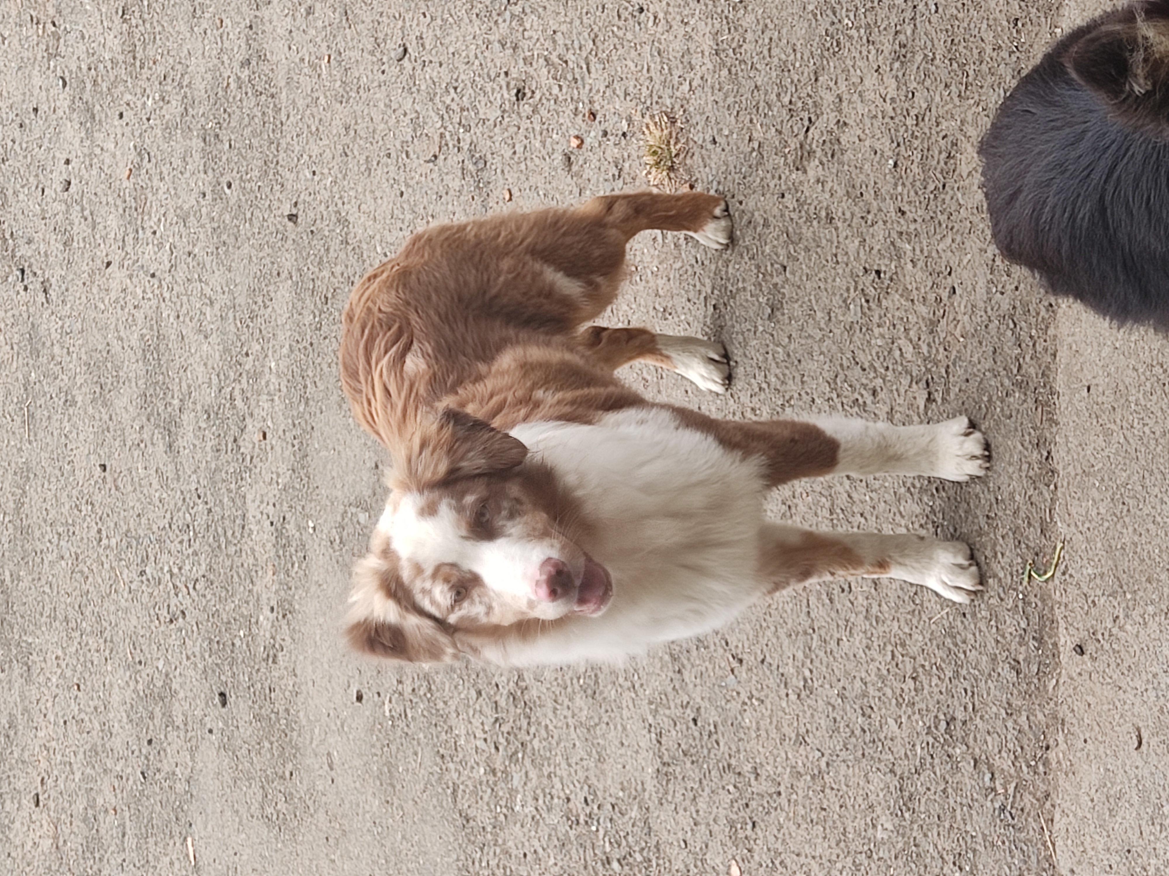 Pocahontas est une australienne rouge merle de lignée mixte ''travail x beauté". C'est une chienne avec beaucoup de tempérament, très à l'aise partout et très sociable.
