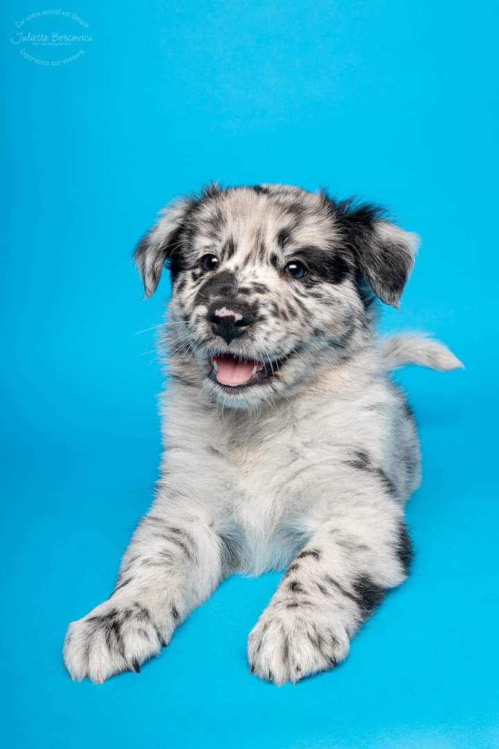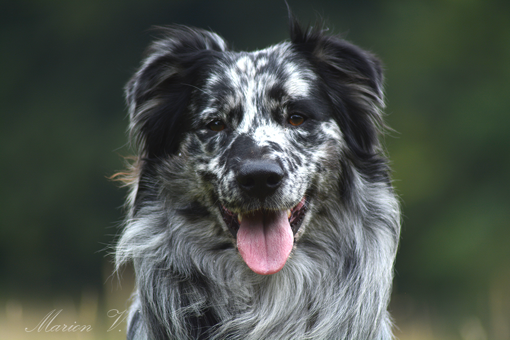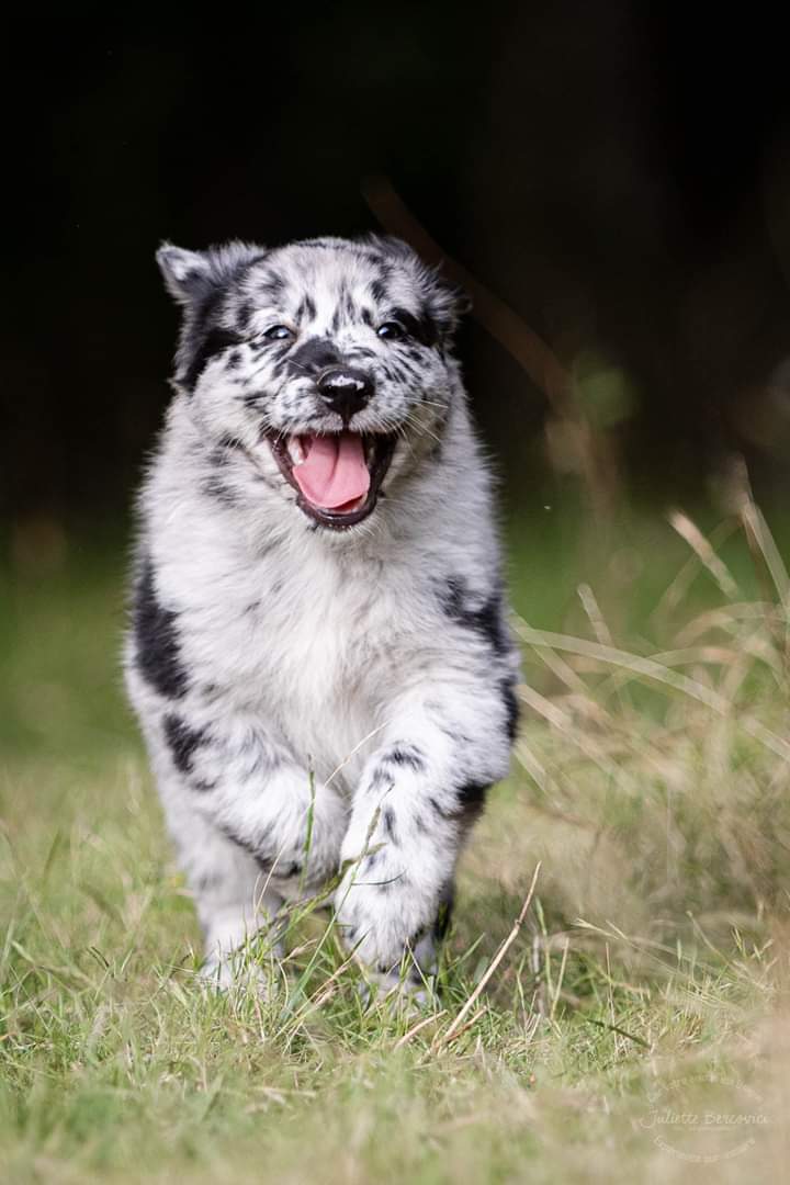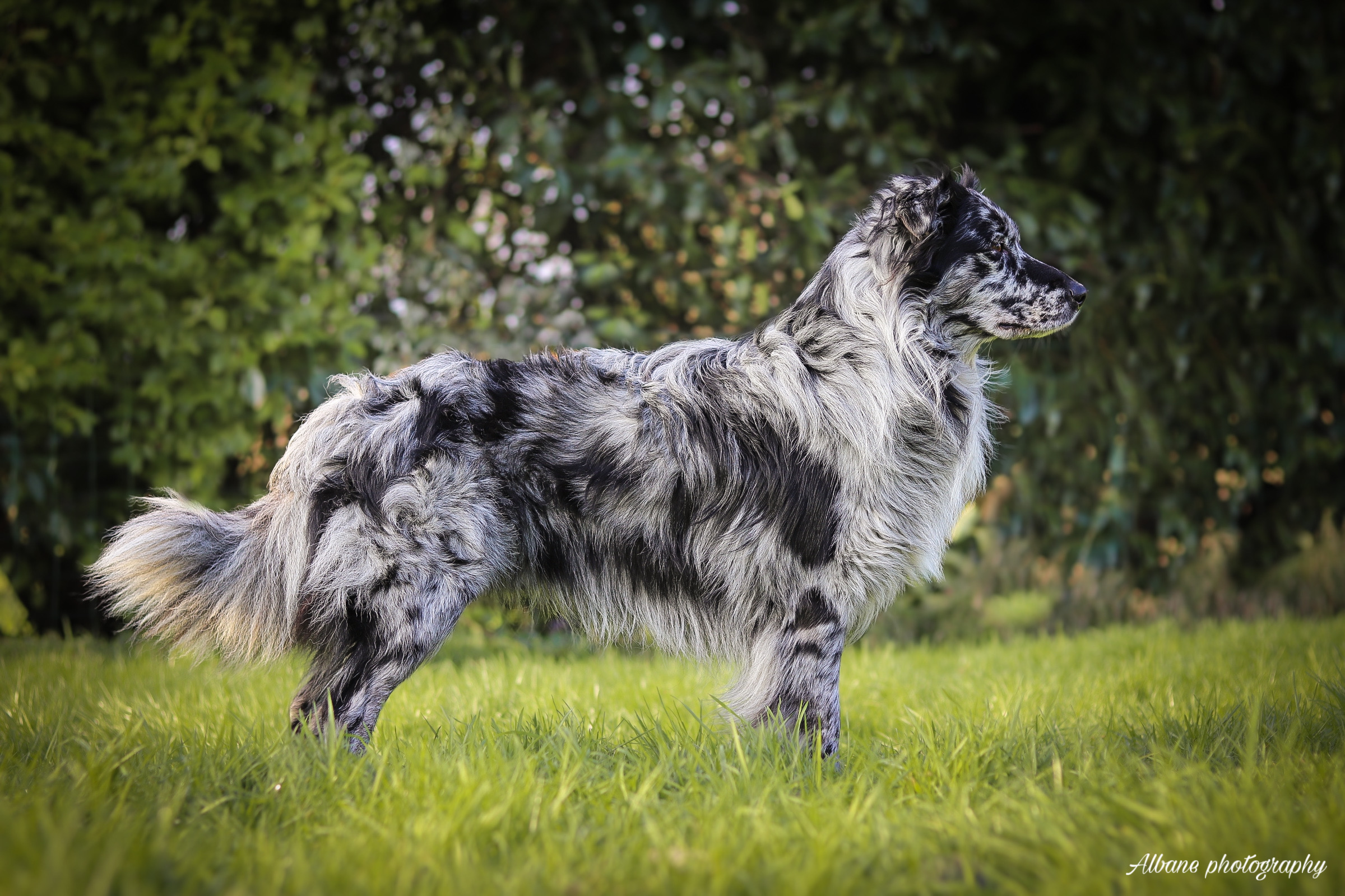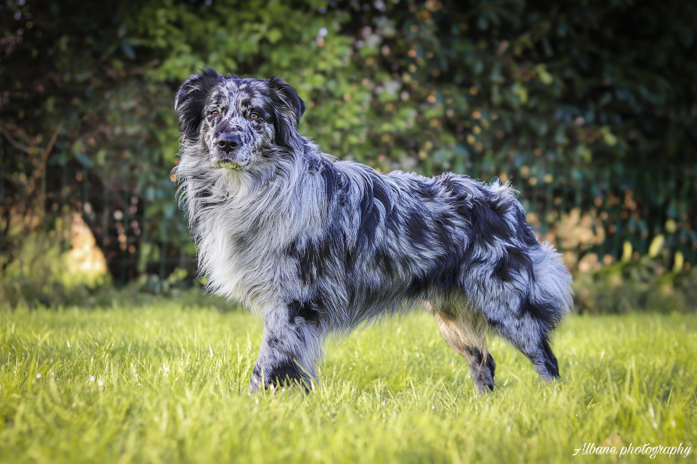 Sherkhan est un australien de travail bleu bicolore LOF et ASCA. Un loulou bien dans ses pattes, toujours joyeux, d'une grande gentillesse et très sociable envers les humains (surtout les enfants) et congénères. Il adore travailler, toujours motivé, est très réfléchi et adore faire plaisir à sa maitresse.